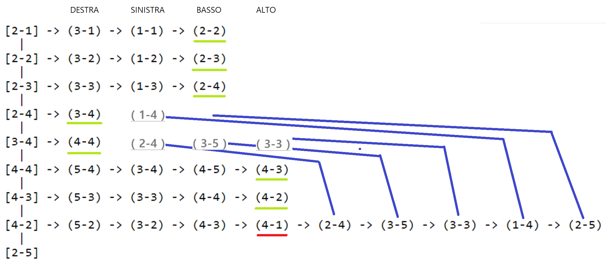 quando però arriva alla fine del corridio (2-4) non può piu avanzare in nessuna direzione.